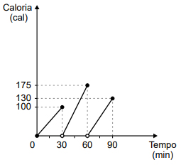 Nos gráficos, consta uma relação entre tempo e quantidade de calorias gastas. Com base nos gráficos, responda às questões a seguir, sempre justificando as respostas dada.