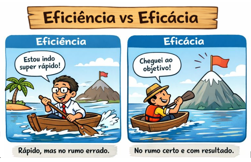 A imagem apresentada traz uma reflexão sobre a diferença entre Eficiência e Eficácia.
